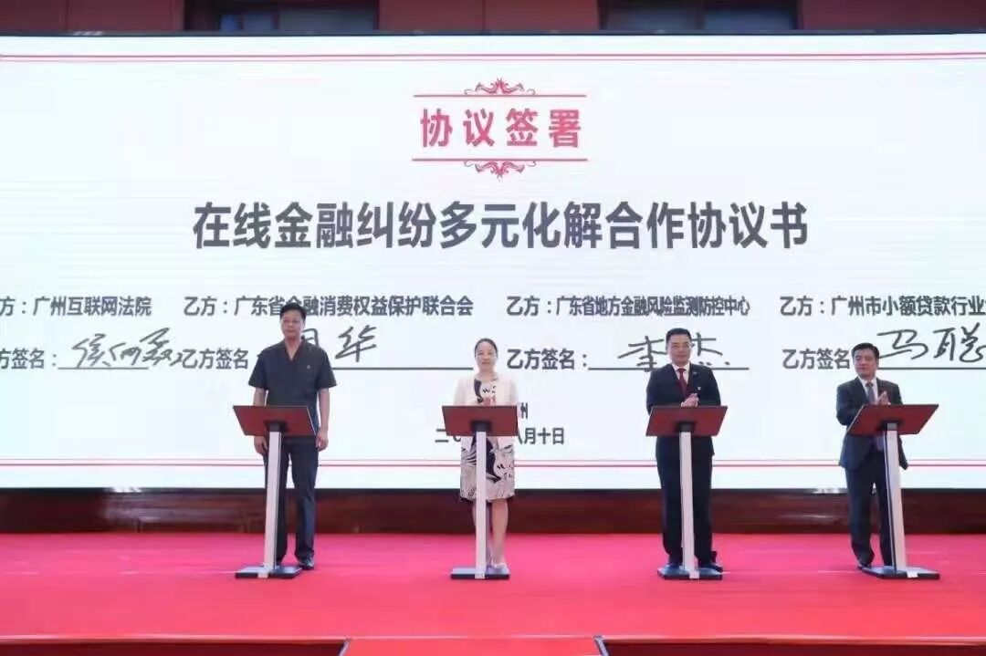 随后,广州互联网法院与广东省金融消费权益保护联合会、广州金融消费纠纷调处中心、广东省金融风险防控中心、广州市小额贷款行业协会等组织签署《在线金融纠纷多元化解合作协议书》,积极引入第三方力量辅助多元化解纠纷。我会马聪会长代表市小贷协会上台签署。